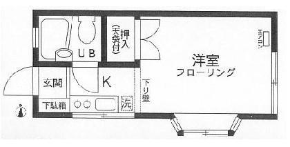| 7万台、1Kマンション、オートロック、エレベーター、エアコン、収納、ガスキッチン1口、室内洗濯機置場、洋室、フローリング、バルコニー、インターホン、学生向き、二階以上、CATV、インターネット対応、バストイレ別、定期借家2年再契約可 |