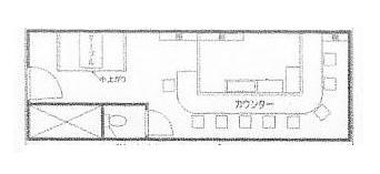 | 7坪、10万台、1階路面、キッチン、トイレ、飲食店舗居抜き(現況立ち飲み屋)、飲食可 |