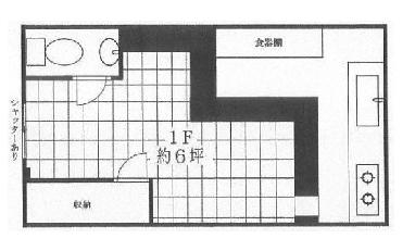 | 10万台、6坪店舗、1階路面、トイレ、厨房、二層シンク、洗面台、カウンター、イス、飲食店舗居抜き(ラーメン屋)、造作譲渡無(残置物扱)、ローカル商店街面す |