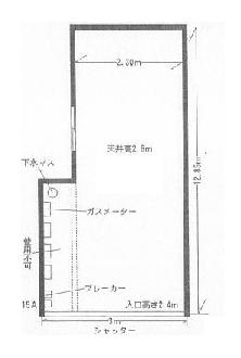| 2万台、1.2坪倉庫、奥行き2.3m、幅1.75m.、高さ2.7m、商店街面す |