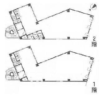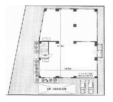 60万台、延74坪店舗事務所、1階37坪2階37坪、キッチン、トイレ、給湯室、1階路面(大通り面す)
