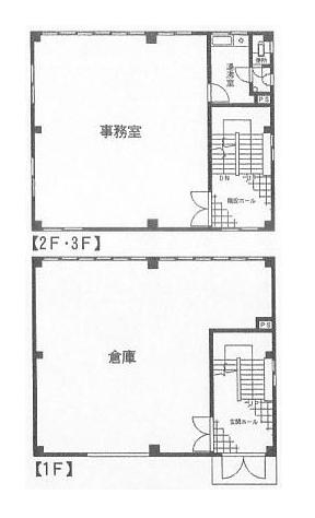 | 70万台、1〜3階延べ120坪倉庫付事務所、給湯室、トイレ、階段・EV無し |