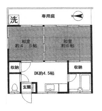 | 8万台、2Kアパート、収納、ガスキッチン、バストイレ別、追焚バス、洗濯機置場、バルコニー、専用庭付 |