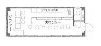 | 19万台、14坪店舗、エレベーター、キッチン、トイレ、カウンター、テーブル、ソファー、ボックス席、バー・スナック・キャバ・クラブ居抜き、店内設備残置物扱、大通り面す |