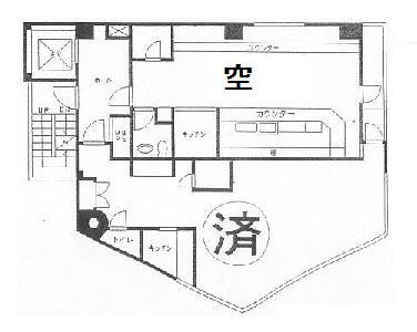 | 10万台、階段・EV無し、造作譲渡無、カウンターバー居抜き、トイレ、エアコン残置、北出口歩2分 |