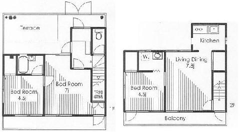 | 13万台、2LDK(2〜3階メゾネット)、オートロック、エアコン、収納、システムキッチンガス3口、バストイレ別、独立洗面台、室内洗濯機置場、洋室、フローリング、インターホン、二階以上 |