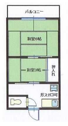 4万台、2Kアパート、エアコン、収納、ガスキッチン、室内洗濯機置場、バルコニー、二階以上、トイレ、事務所使用可
