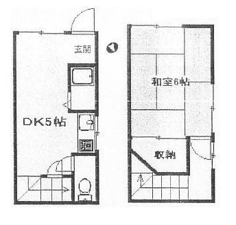 | 5万台、1Kアパート、エアコン、収納、ガスキッチン、バストイレ別、学生向き、1〜2階メゾネット(テラスハウス) |
